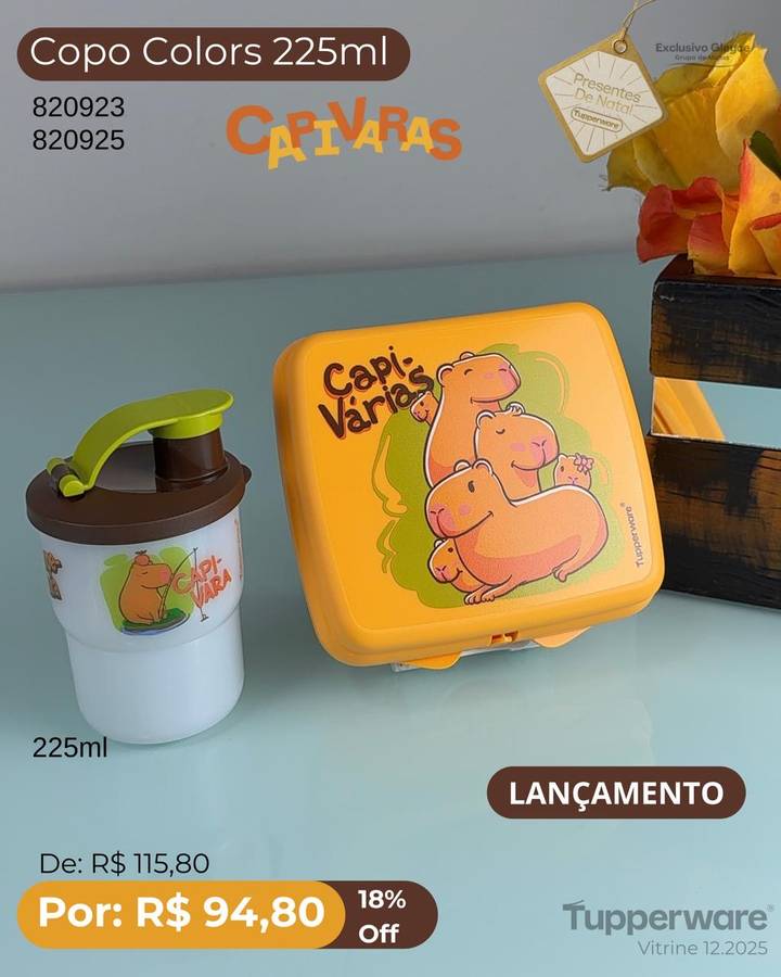 Estojo Tupperware da Capivara . Levar lances , materiais escolares.