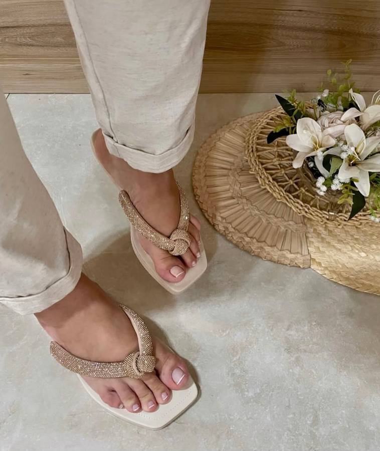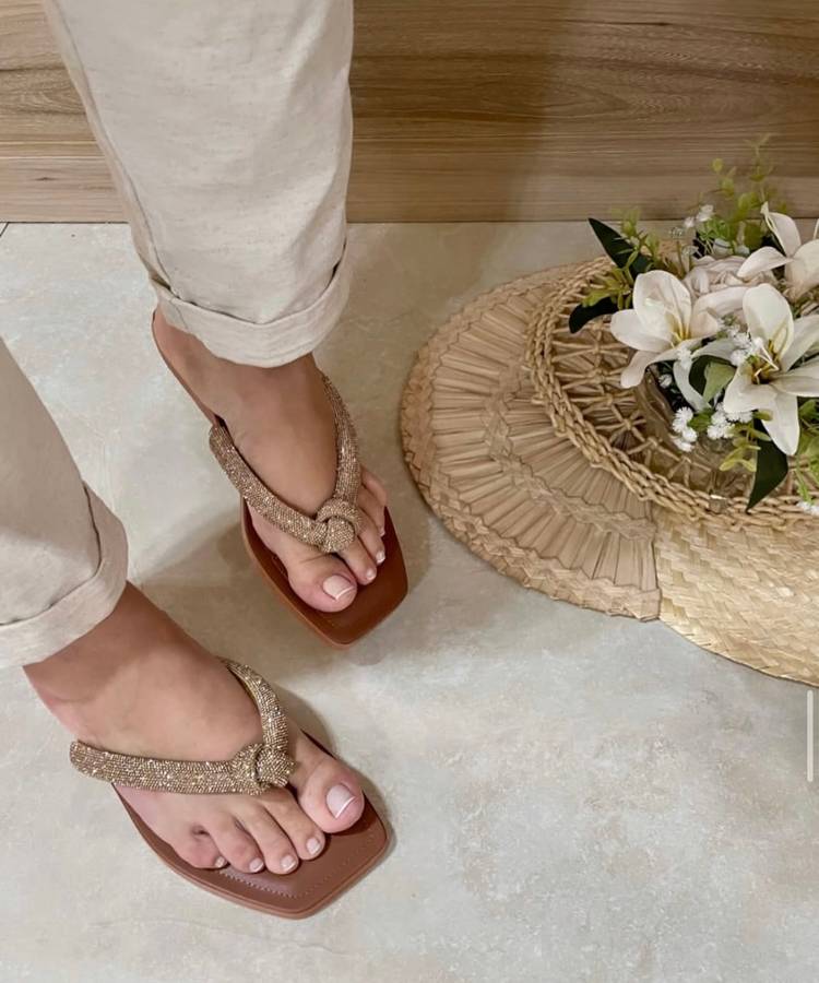 Chinelo confortável anatômico de nó com strass modelo versátil é lindo .