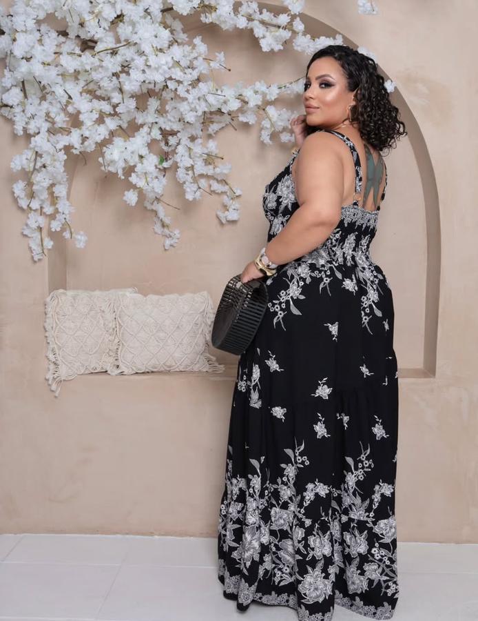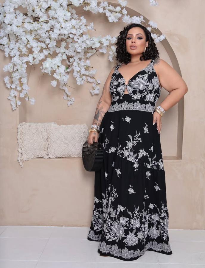 Vestido floral plus size detalha busto