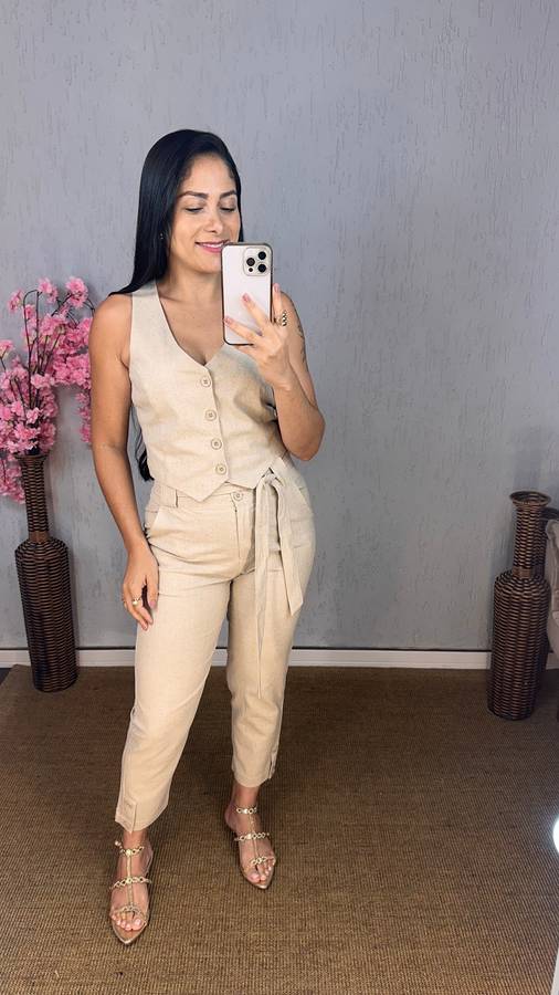 Calça modelo pantacourt, em linho com elastano e algodão. Temos PMG e em várias cores.