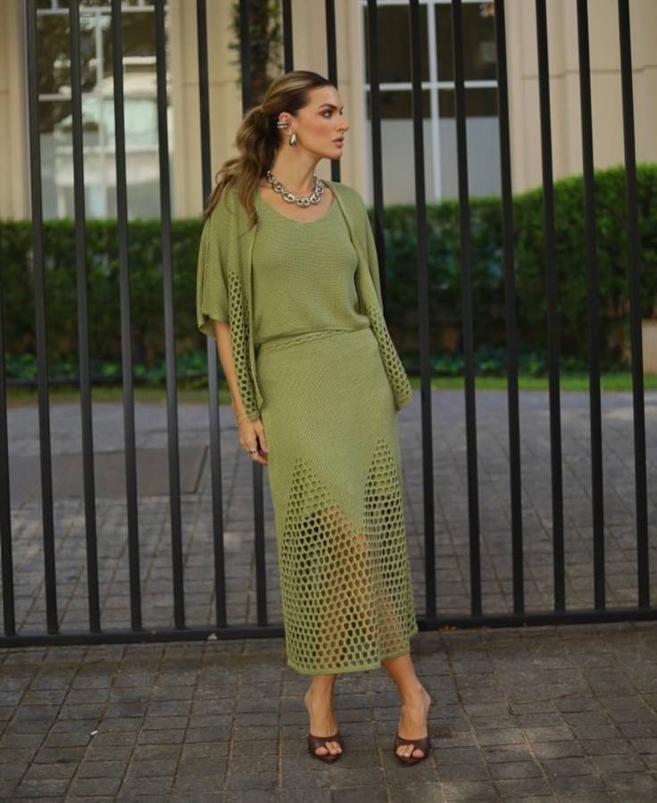 Não tem nada mais chic que um conjunto e regata em tricot, não é mesmo? E esse no tricot modal com textura está um charme! Confortável, elegante e sofisticado: o conjunto perfeito.