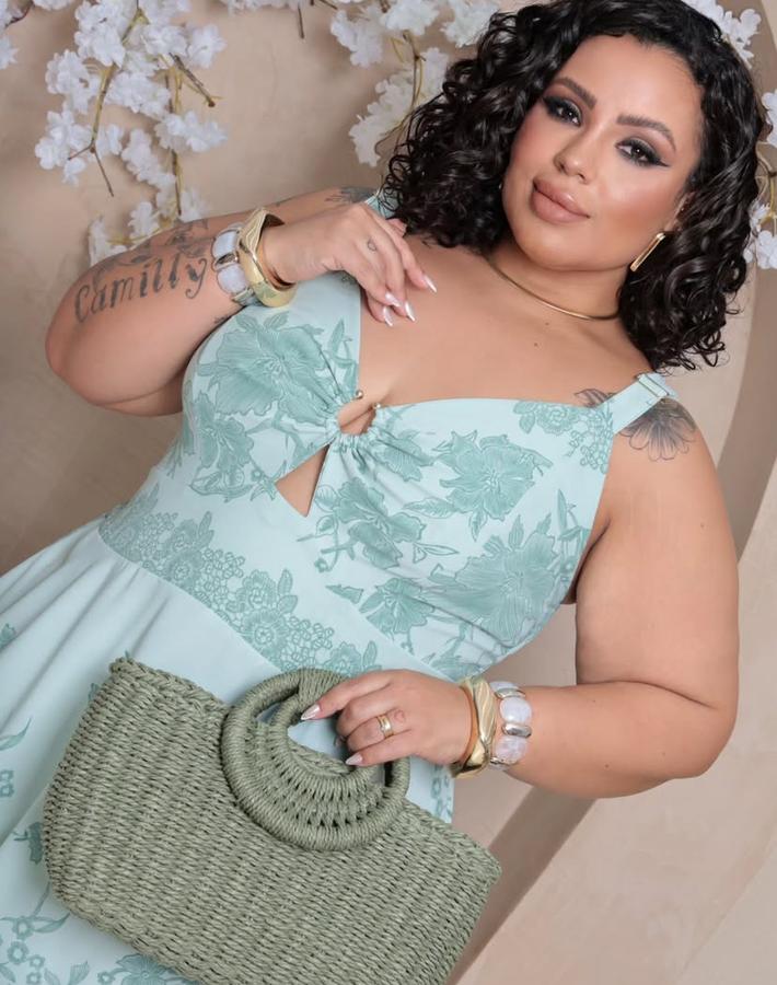 Vestido plus size floral detalhe no busto