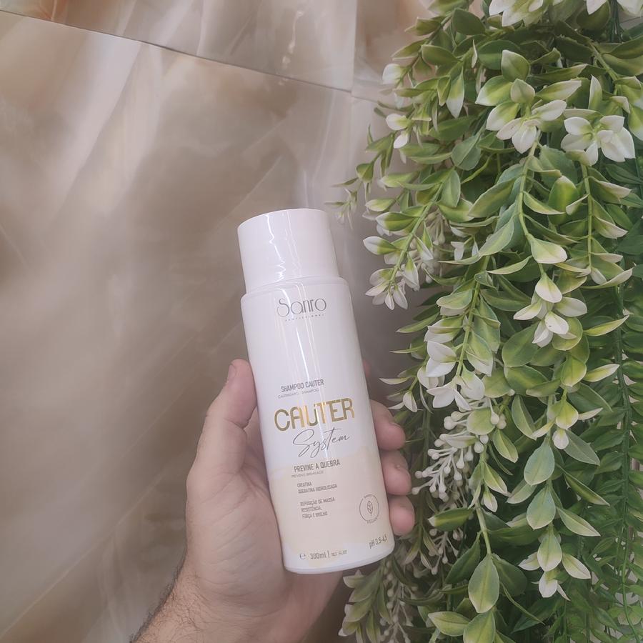 shampoo da linha Cauter da Sanro que limpa profundamente e prepara os fios para receber o tratamento. Vegano, sem parabenos e petrolatos — ajuda na reposição de massa, restaura resistência.